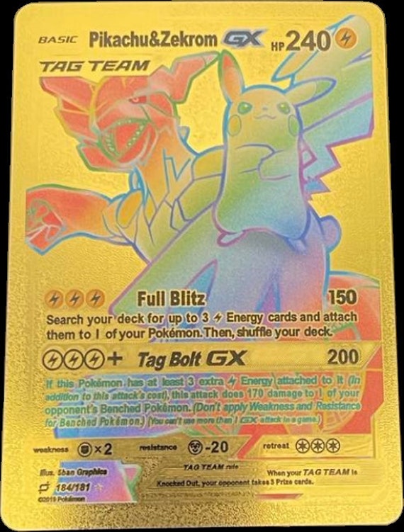 Pikachu Zekrom Gx Hp240 Secret Tag Team Up Shiny Gold Etsy De
