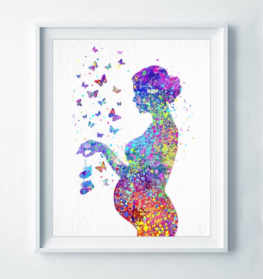 Pregnancy Art Print Pregnant Woman Watercolor Gynecology Baby Shower Gift Baby Birth Present Butterflies Poster Obstetrician Wall Decor A230 Etsy